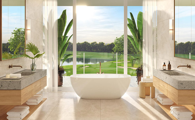- Large-format, limestone-style porcelain tile flooring throughout most interior spaces and all balconies